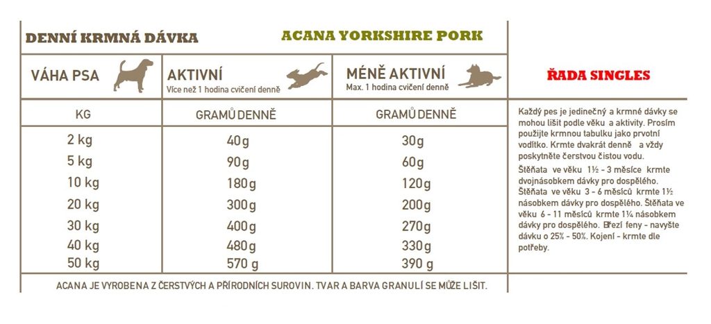 Acana Dog Singles Cerdo de Yorkshire es un alimento completo para perros de todas las razas y edades. Su receta con una única fuente de proteína animal contiene 50 % de carne de cerdo de Yorkshire. La calabaza fresca y la calabaza moscada aportan fibra soluble, ideal para perros con digestión sensible. Gracias al extracto de hígado liofilizado, el pienso resulta sabroso incluso para los perros más exigentes.