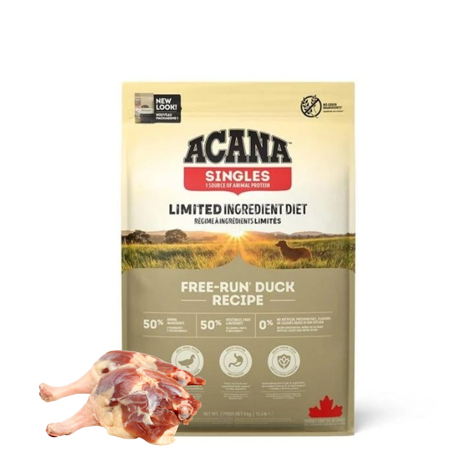 Acana Dog Singles Pato de Corral Libre es un alimento adecuado para perros de todas las razas y edades. Contiene carne de pato criado en libertad. Gracias a su única fuente de proteína y vegetales, es ideal incluso para perros con digestión sensible.