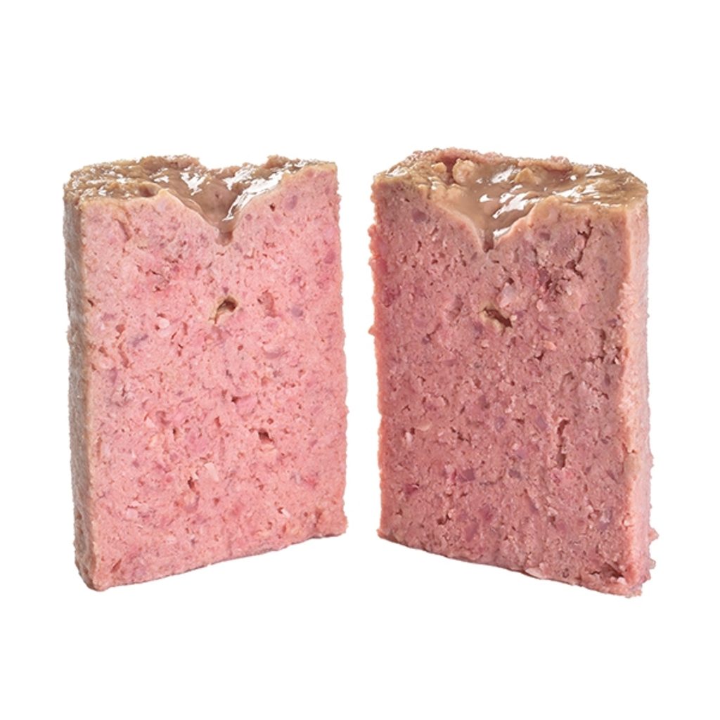 Un suave paté de carne con pescado y aromáticas pieles de pescado para perros adultos de todas las razas. Ideal como alimento completo, aperitivo delicioso o para mejorar el sabor del pienso. Estimula el apetito y ayuda a reponer líquidos.