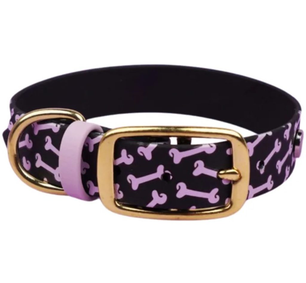 Collar de diseño hecho de biothane con hebilla práctica: ligero, resistente al agua y cómodo de llevar.