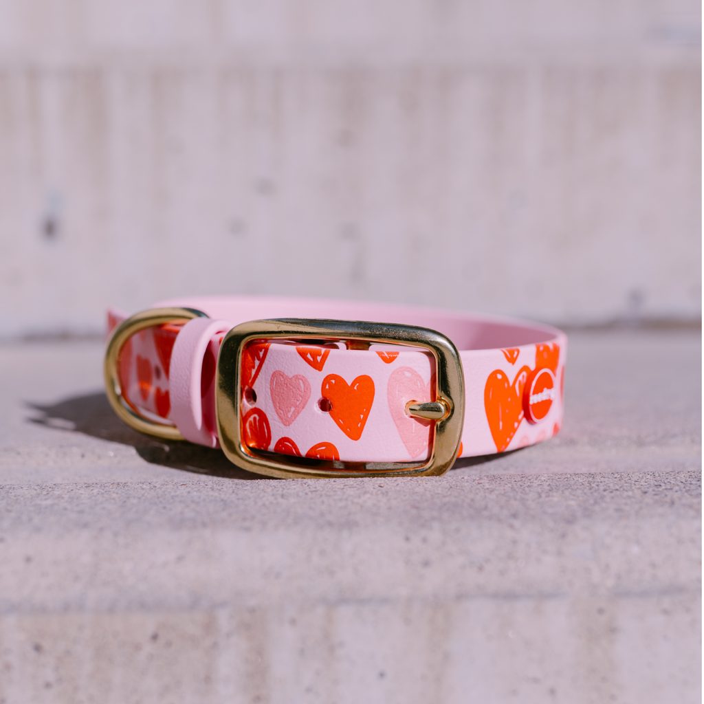 ¡Amor a primera vista y a primera caminata! El collar rosa Reedog BioThane® con un original estampado de corazones está hecho para perritas y caballeros que quieren repartir alegría. Es 100% impermeable, no retiene olores y, gracias a los herrajes de latón, aguanta incluso a los tiradores más fuertes. Estilo, resistencia y amor perruno infinito en un solo producto.