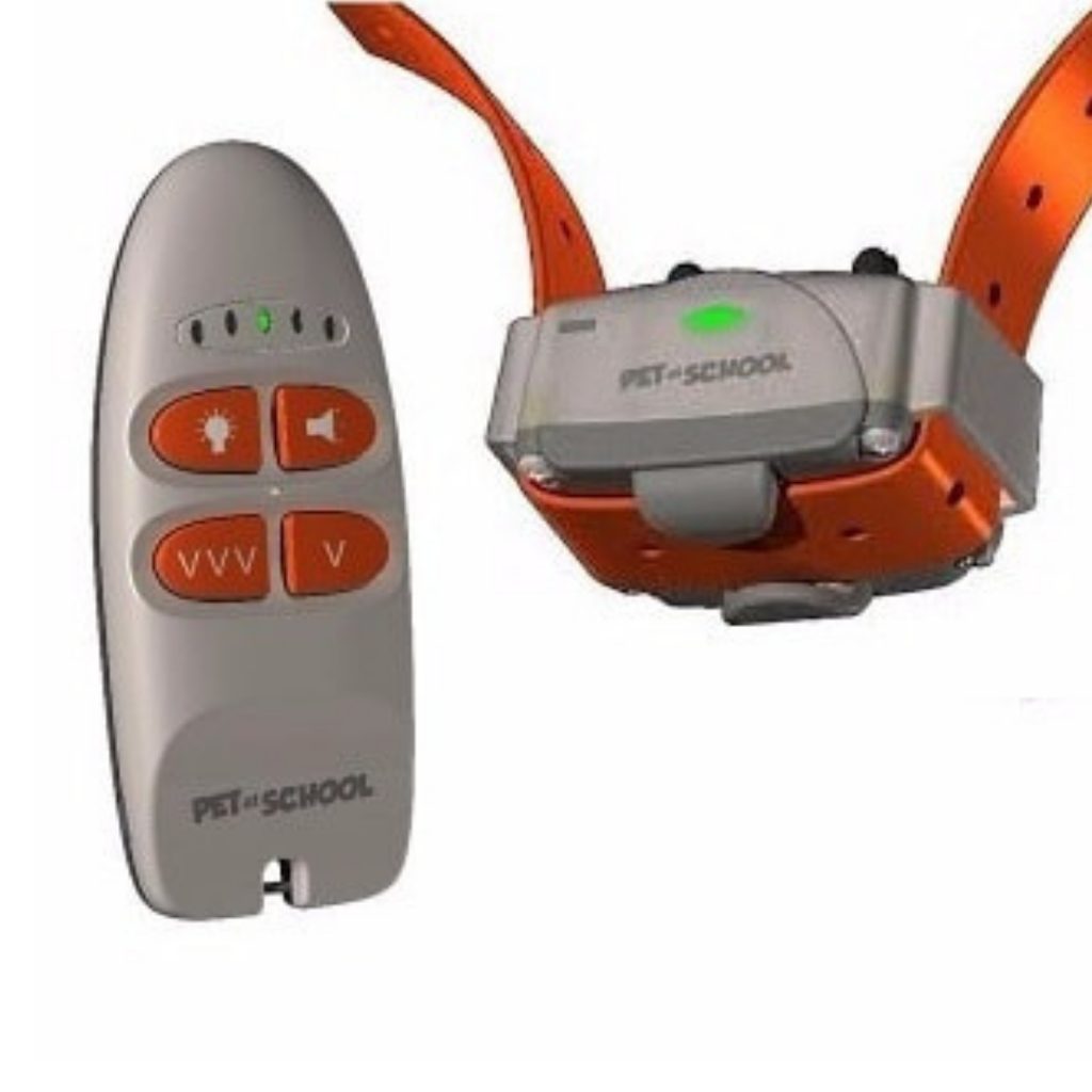 Pet at School Soft es un collar de adiestramiento electrónico con 2 niveles de vibración, sonido y luz. Puede realizar el entrenamiento sin corrección del impulso a una distancia de hasta 200 m. El dispositivo del fabricante francés de calidad Num Axes es resistente al agua y funciona con pilas. El transmisor no tiene pantalla.