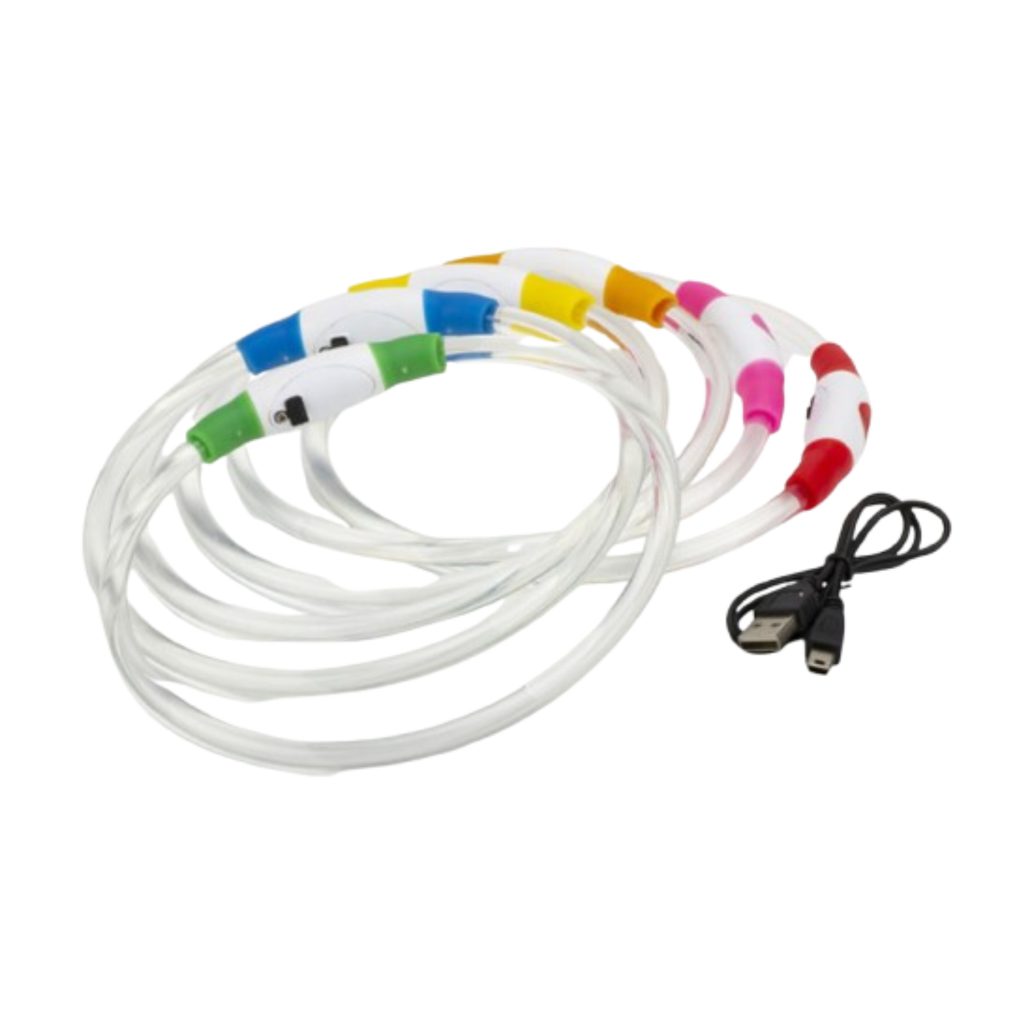 El collar luminoso LED Reedog es adecuado para perros y gatos de todos los tamaños, y permite que tu mascota sea visible en condiciones de poca luz, ayudándote a mantenerla a salvo. La iluminación LED superbrillante es visible a cientos de metros y ofrece tres modos de iluminación: brillo constante, parpadeo suave y parpadeo intenso. El collar se puede recortar para adaptarlo a sus necesidades, con una longitud total de 68 cm. La batería es recargable mediante cable USB (incluido).