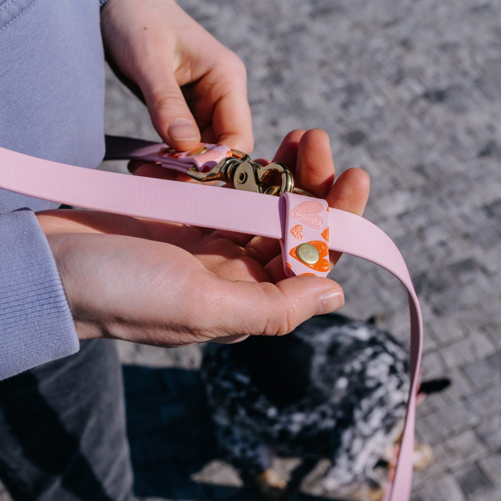 ¡Amor a primera vista y a primera caminata! La correa multiposición rosa Reedog con un original patrón de corazones está hecha para perritas y caballeros que quieren repartir alegría con la máxima libertad. Gracias al material premium BioThane®, la correa es 100% impermeable, no retiene olores y es fácil de mantener. La longitud ajustable se adapta a cualquier situación y los herrajes de latón de calidad sujetan con seguridad incluso a los tiradores más fuertes. Estilo, resistencia y amor perruno infinito en un solo producto.